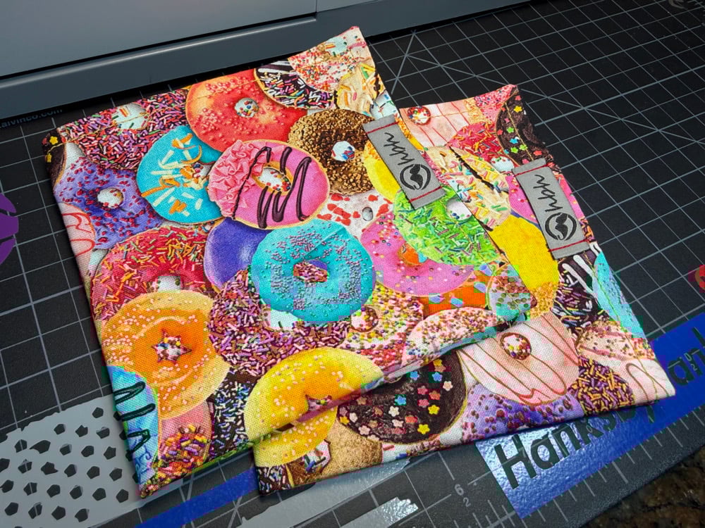 10x10" double sided handkerchief backed in a black poly cotton